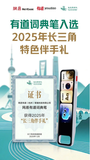 日前,长三角消保委联盟举办“2025长三角伴手礼”评测活动,为消费者推荐各行各业的优质品牌和放心产品。其中,有道词典笔成为智能教育行业唯一入选的AI产品。