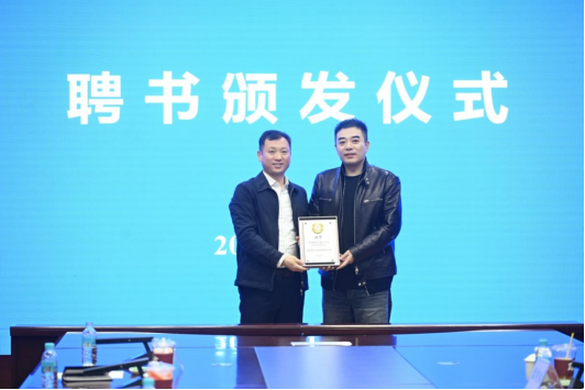 延吉市委副书记、代市长金峰(左)为董海锋颁发聘书