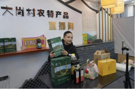 沈刚在大岗村直播间进行直播