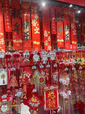 眼下,杭州物美各门店进入年货节模式,除了琳琅满目的商品之外,红红火火的新春氛围组也已组团上线——配乐是热闹喜庆的新年曲调,入口处悬挂着各种春联和福字,还有让家里年味直接翻倍的小马玩偶和挂饰,也能在物美备年货时,“顺手”一起带回家。