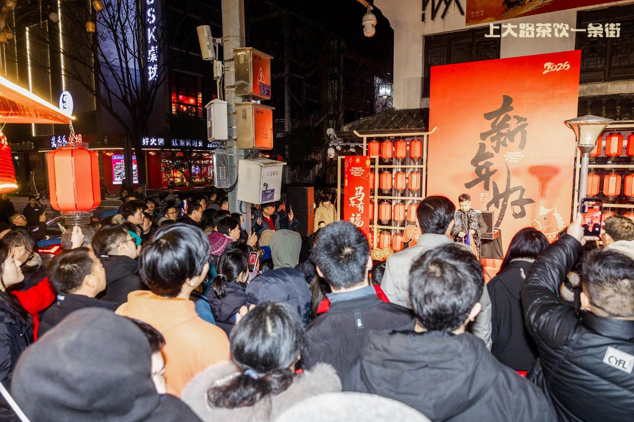 正月初一至初七(2月17日—23日),绍兴市越城区上大路茶饮一条街举办“喜迎新春 马上有礼”系列年俗活动,以沉浸式场景、年轻化表达、宋韵化体验,为市民与游客献上一场集文化体验、旅游休闲、商业消费于一体的新春文旅盛宴,有效激活春节假期文旅消费市场。