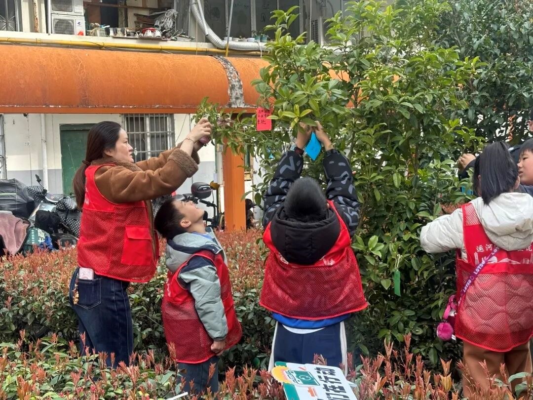 植树结束后,孩子们拿出写有心愿的卡片,小心翼翼地悬挂在自己栽种的桂花树枝头。五彩的卡片在微风里轻轻摇曳,仿佛在鼓励着孩子们纯真的梦想。社区工作人员还现场讲解了植树节的由来,以及树木净化空气、涵养水土、美化环境的重要作用,引导孩子们从小树立“爱绿、护绿、植绿”的生态意识。这不仅仅是一次植树劳动,更是一堂生动的生态文明教育课。