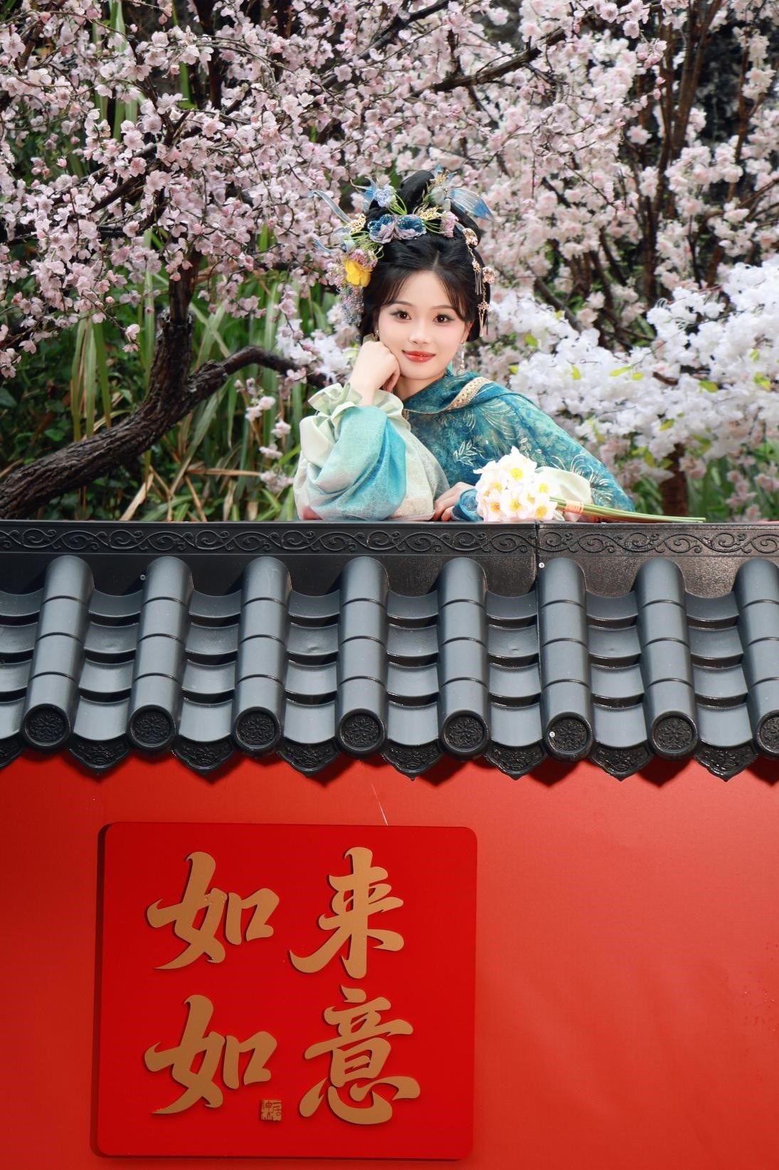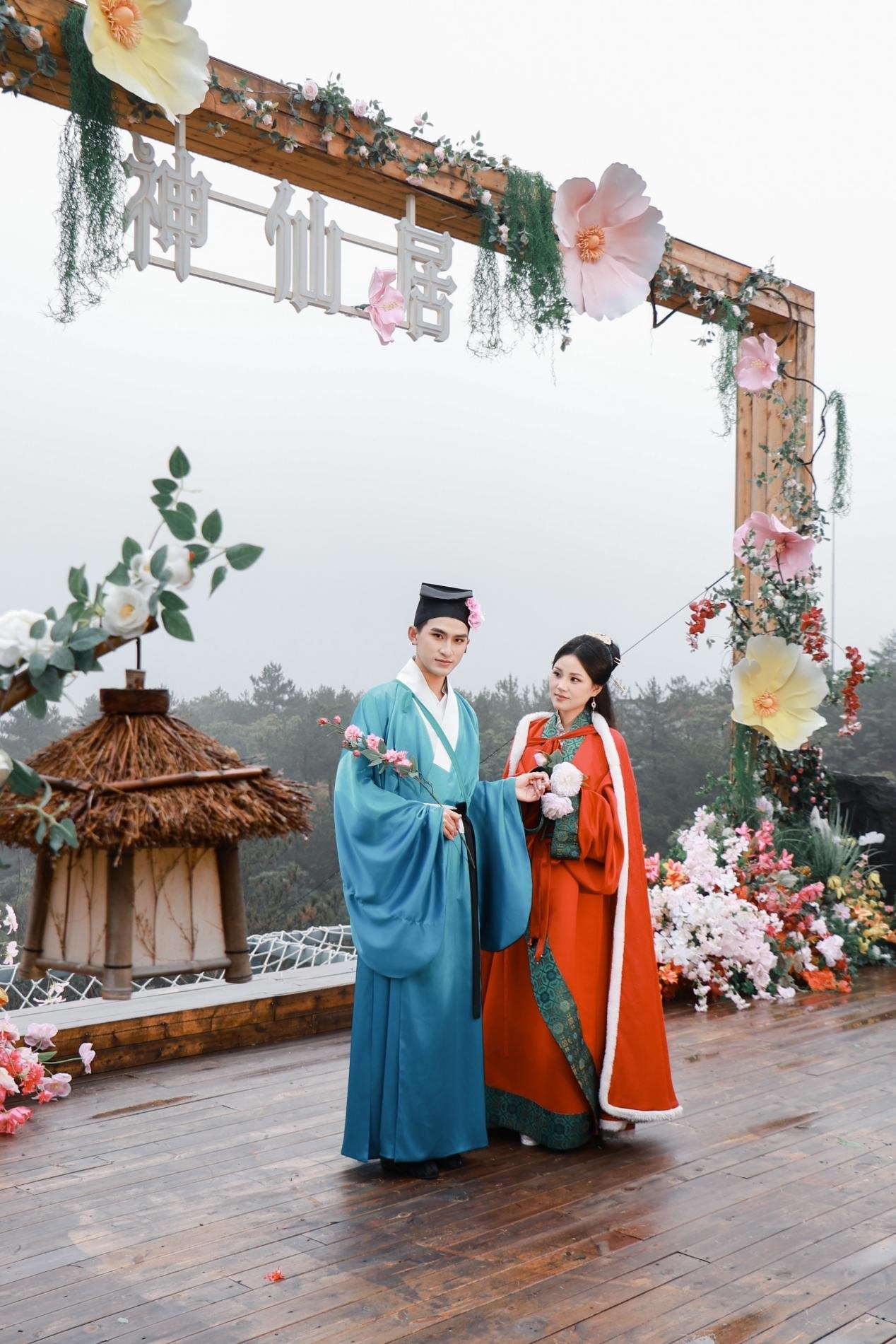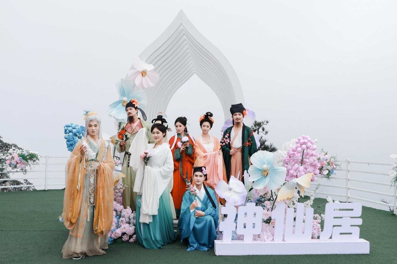 为提升互动体验,景区在十二个核心景点均设置特色氛围打卡装置,融花材之美、国风之雅于山水之间,“景”与“境”自然合一。花神形象与自然山水、花艺造景相映成趣,让神仙居的雄奇山水更添人文诗意,也让传统花神文化有了可观赏、可体验、可打卡的具象承载场景。