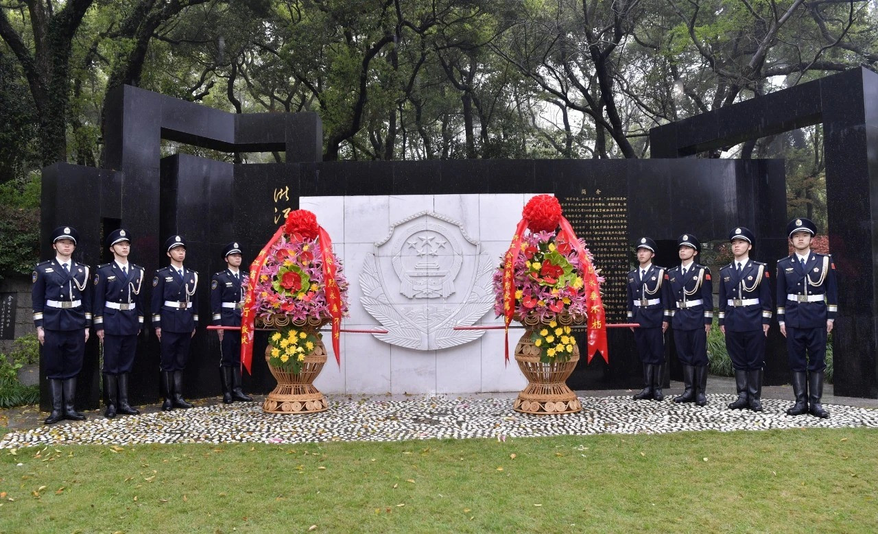 清明追思,致敬英烈。4月3日下午,浙江省公安厅在云居山浙江公安英烈纪念墙前举行清明祭奠活动。省公安厅机关民警代表与浙江警察学院师生代表整齐列队,深切缅怀为捍卫平安、守护正义而英勇献身的公安英烈。