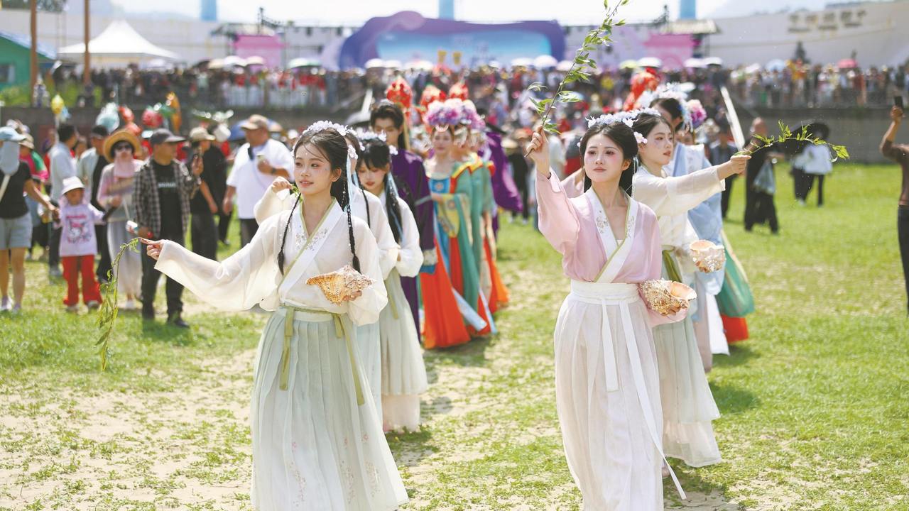 象山石浦皇城沙滩人潮涌动、锣鼓喧天,一年一度的“三月三·踏沙滩”民俗文化活动在此如约开场。