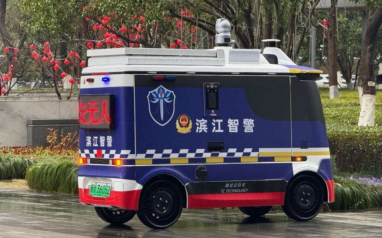 无人机在空中盘旋,灵巧的机器狗播报中英文双语提醒,戴着AR眼镜的民警在站岗执勤……在杭州,“警察叔叔”们有着一群“赛博伙伴”。