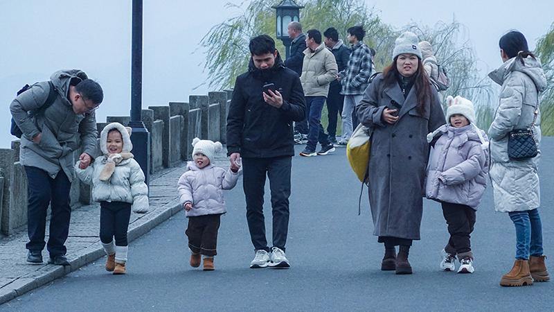 苏堤、白堤上,赏景的人群络绎不绝,游船划破波光粼粼的湖面,与蓝天与远山交融成景。不少摄影师特意蹲守晨光黄金时段,定格这份冬日里的“西湖蓝”。