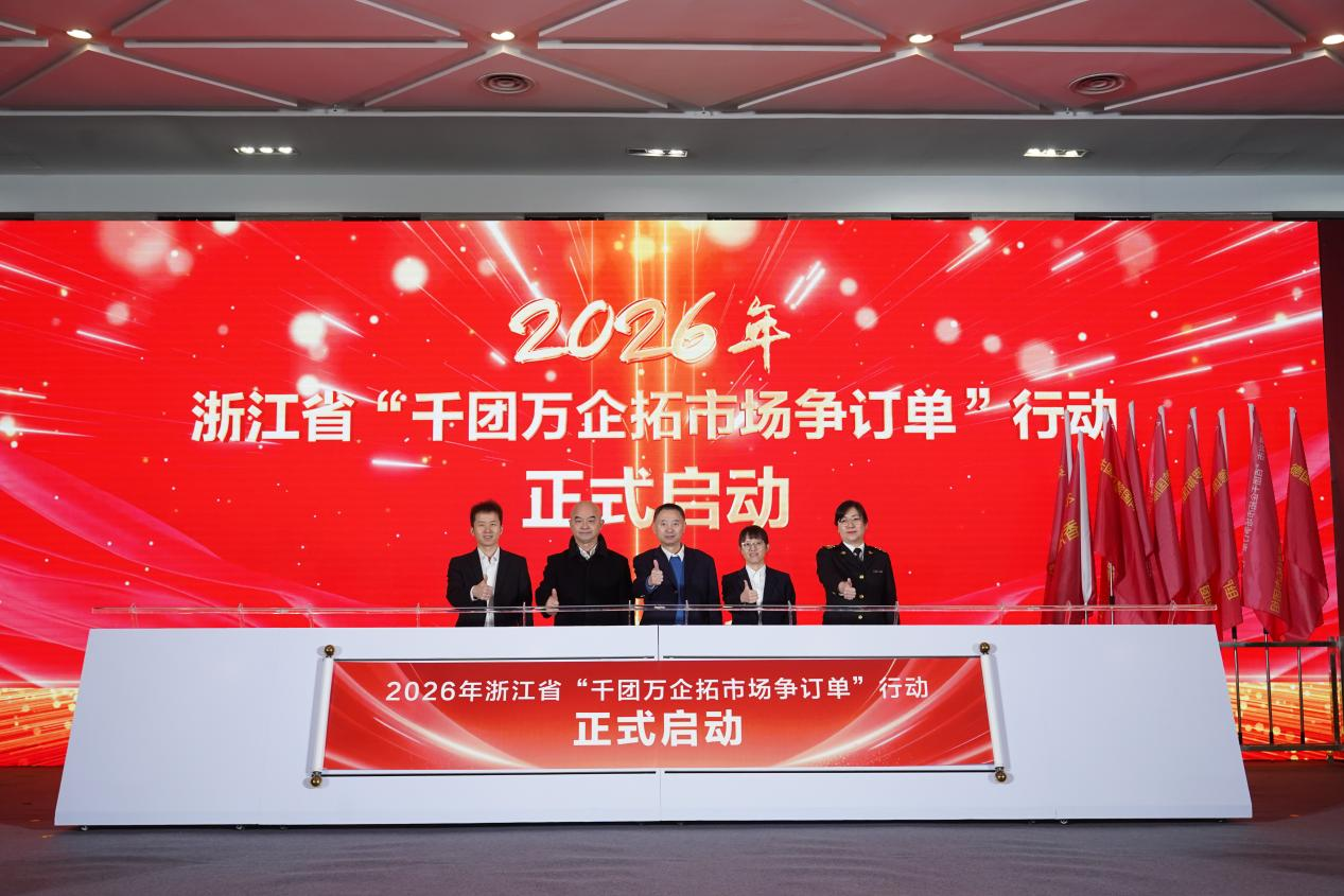 1月6日,2026年浙江省“千团万企拓市场争订单”行动启动仪式在嘉兴举行,省、市、县三级商务部门负责人、重点外贸企业及商协会代表共150余人参加活动,标志着浙江省新一年度的“千团万企拓市场争订单”行动正式拉开序幕。