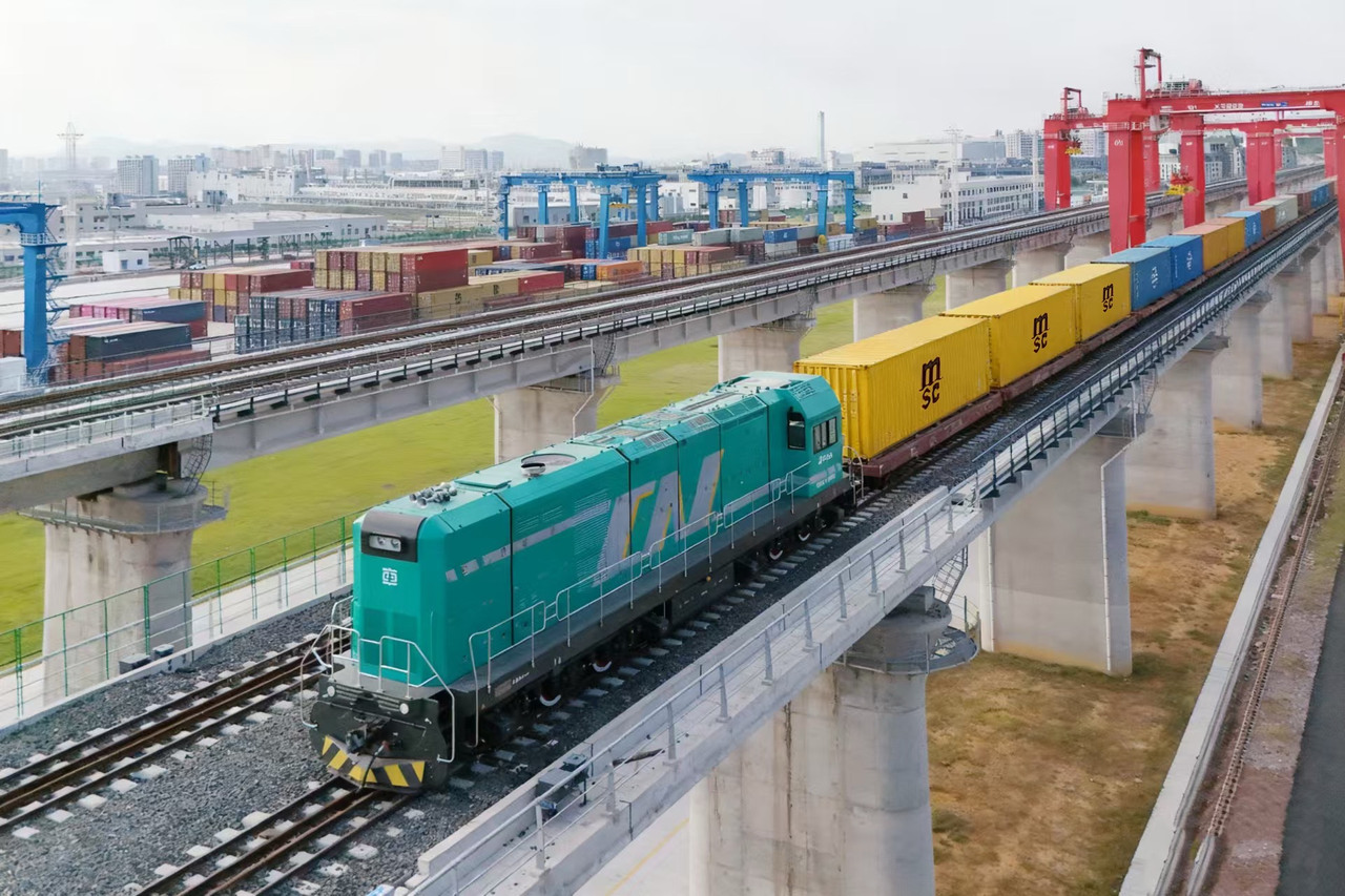 1月7日,随着一列满载义乌小商品的货运班列缓缓驶出义乌国际枢纽港海关监管场所直奔宁波舟山港,义乌国际枢纽港累计到发集装箱量突破10万标箱。