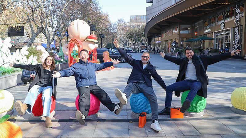 石墩子新年穿“新衣”,中外游客点赞杭州街头浪漫