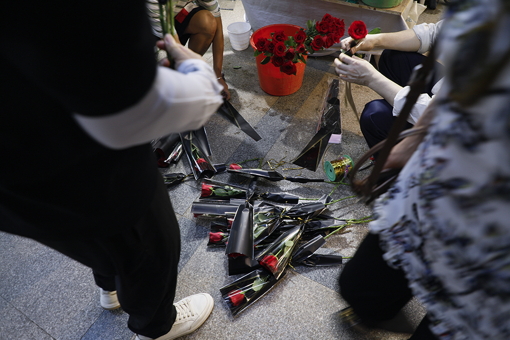 老板正在包扎玫瑰花