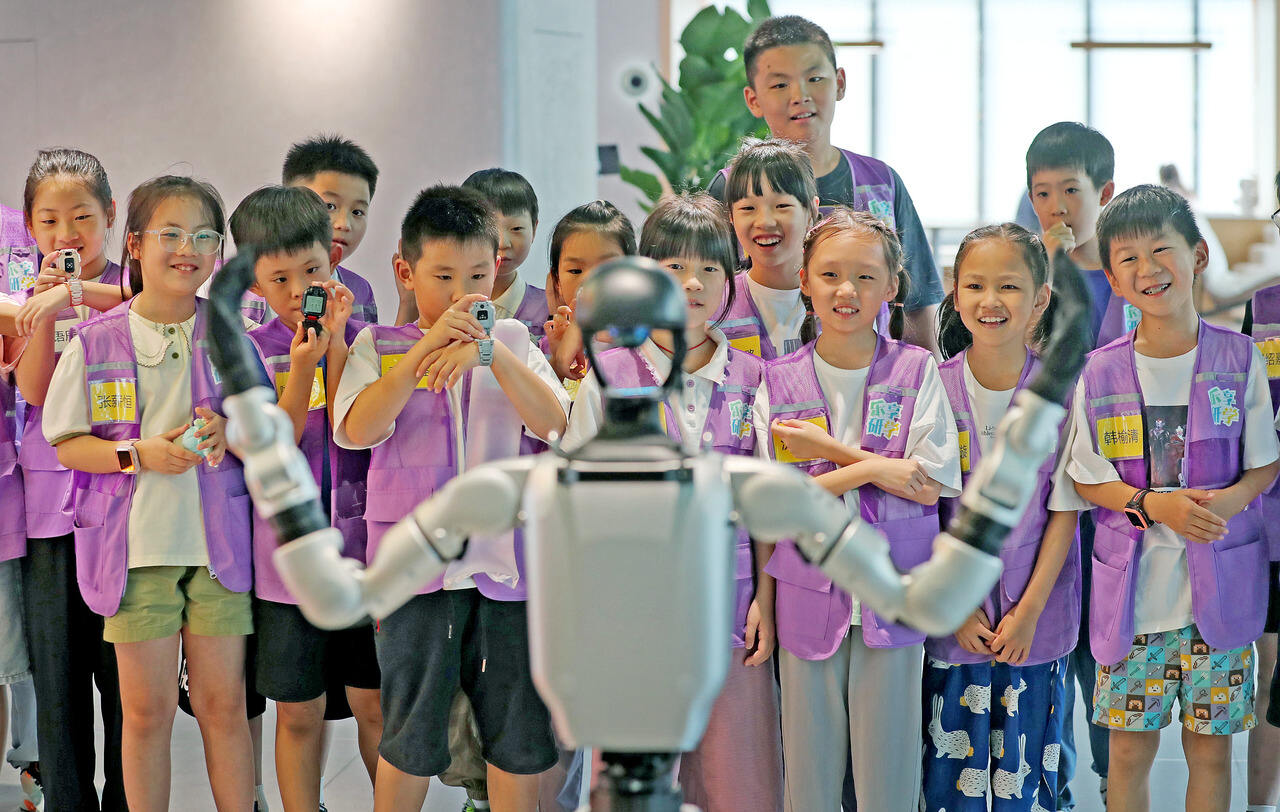 杭州文三未来科技体验中心里孩子们在此沉浸式参与机器人互动 记者 林云龙 通讯员 刘静 丁依婷