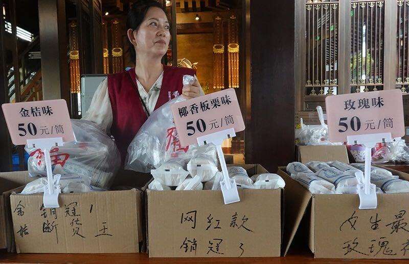香积寺素月饼以进口橄榄油制作,秉持古法工艺,其背后的素食文化更被列入杭州市非物质文化遗产,这也让它成为不少人中秋送礼、自享的“心头好”。工作人员表示,截至中秋节前,售卖点将持续供应筒装素月饼,满足市民游客的中秋消费需求。