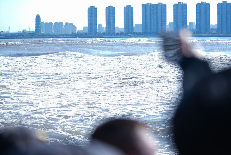 来自诸暨的周先生则从文化角度解读了观潮的吸引力:“我在杭州生活20年,其实每月农历初一、十五前后都有潮,但大家偏爱八月十八,更多是为了感受这份仪式感。”他的话道出了许多市民的心声——观潮不仅是自然奇观的欣赏,更是一场承载传统记忆的集体活动。