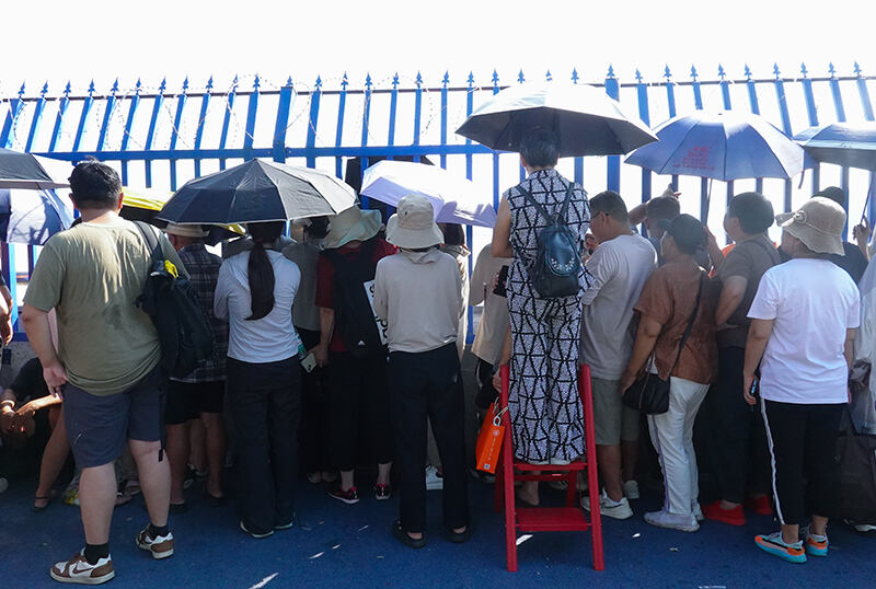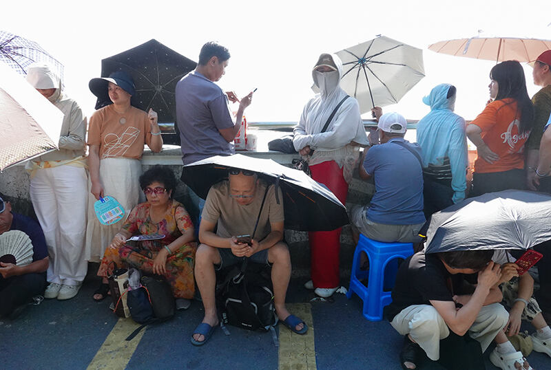 烈日下等潮水来的观潮客 记者 陈天怀 摄