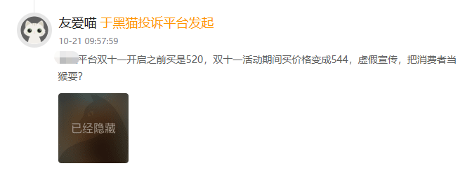 除了复杂算法带来的“优惠陷阱”外,由“先涨价后降价”导致的“双十一”商品价格比原先更贵这一操作,也让消费者十分“上火”。