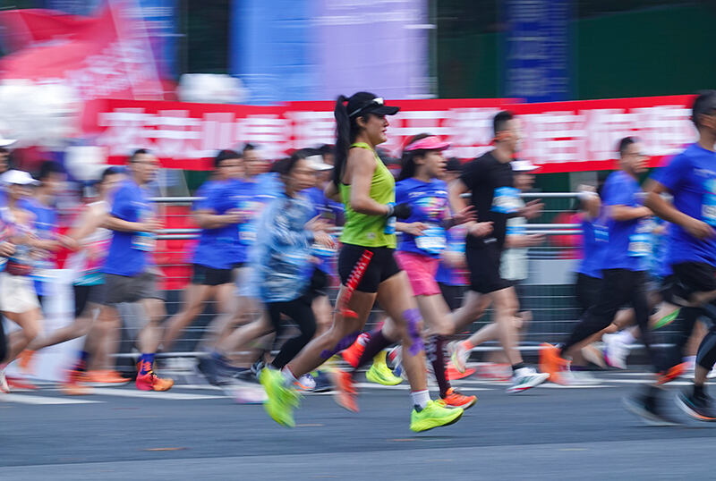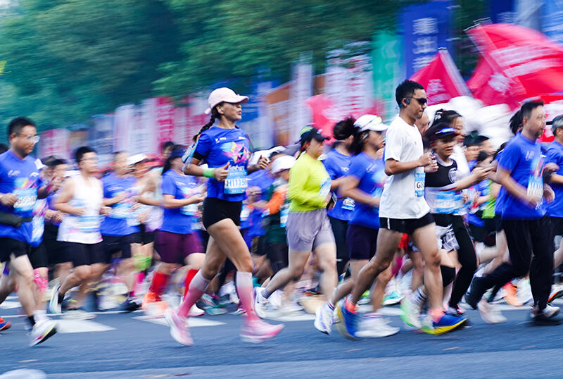 在赛道外,一场无声的“搜索”也在悄然展开。盛先生手持专业单反相机,在人群中不停地寻找着角度。他告诉记者,今天是读高一的16岁儿子首次挑战半马,他和孩子妈妈特意赶来为儿子加油助威,并计划用相机记录下这一珍贵时刻。为了方便辨认,他们原本约定让儿子穿蓝色衣服,没想到现场许多团队都选择了蓝色服装,这让他们辨认起来困难重重。盛先生只能端着相机耐心等待,希望儿子跑过来时能朝路边看一眼。