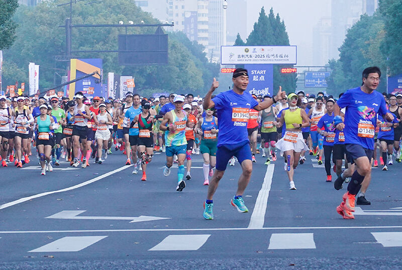 浙江在线11月2日讯(记者 陈天怀)今天早上7时,随着清脆的枪响,2025杭州马拉松在杭州黄龙体育中心鸣枪起跑。数千名选手迎着朝阳,以奔跑的姿态穿梭于杭州的千年历史与现代繁华之间,共同领略西湖的婉约与钱塘的磅礴。