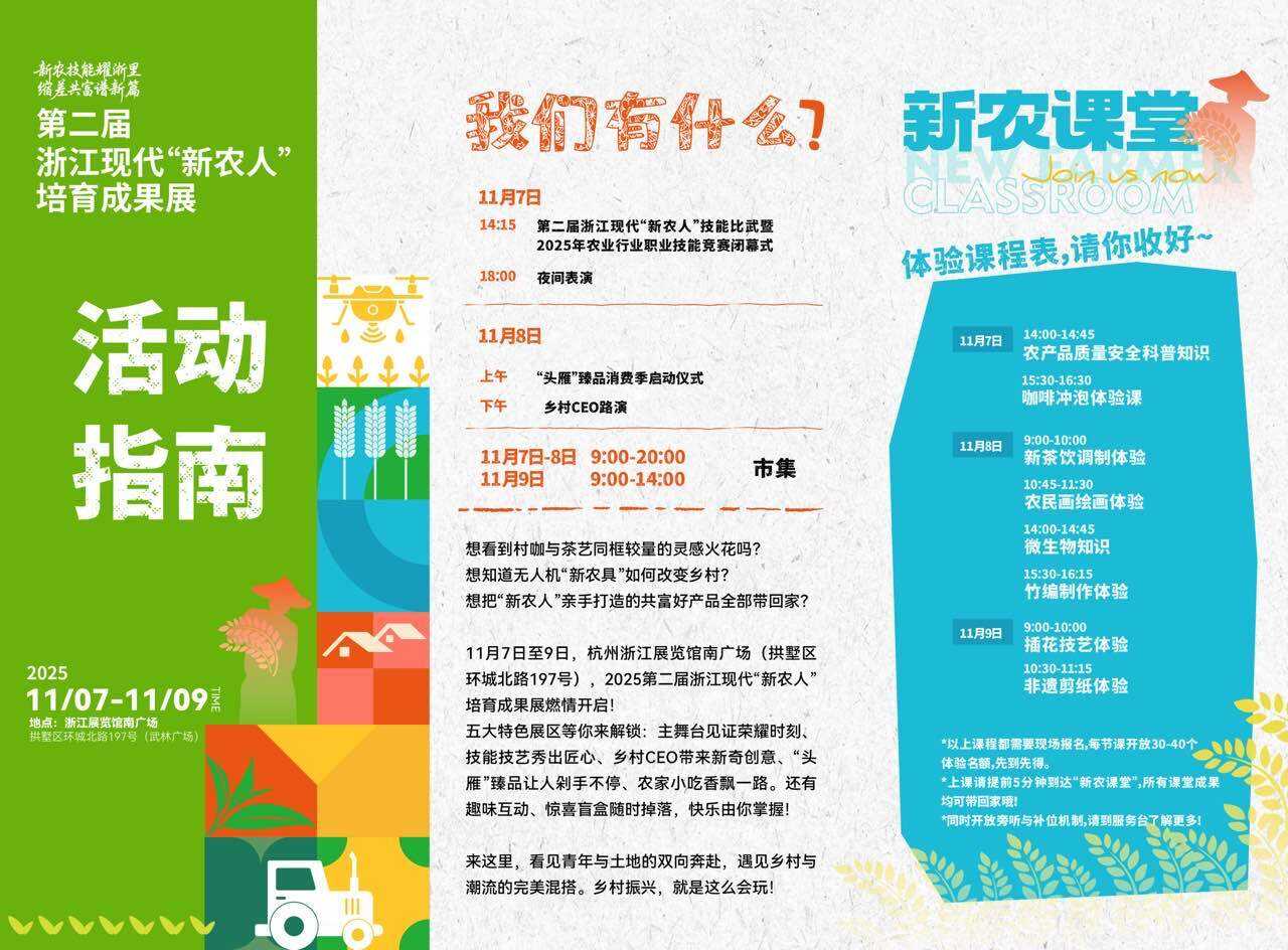 11月7日至9日,这场汇聚新农技能、乡村活力的盛会,就等你带着家人朋友一起来打卡,感受现代“新农人”的风采,解锁乡村振兴的“浙江答案”。
