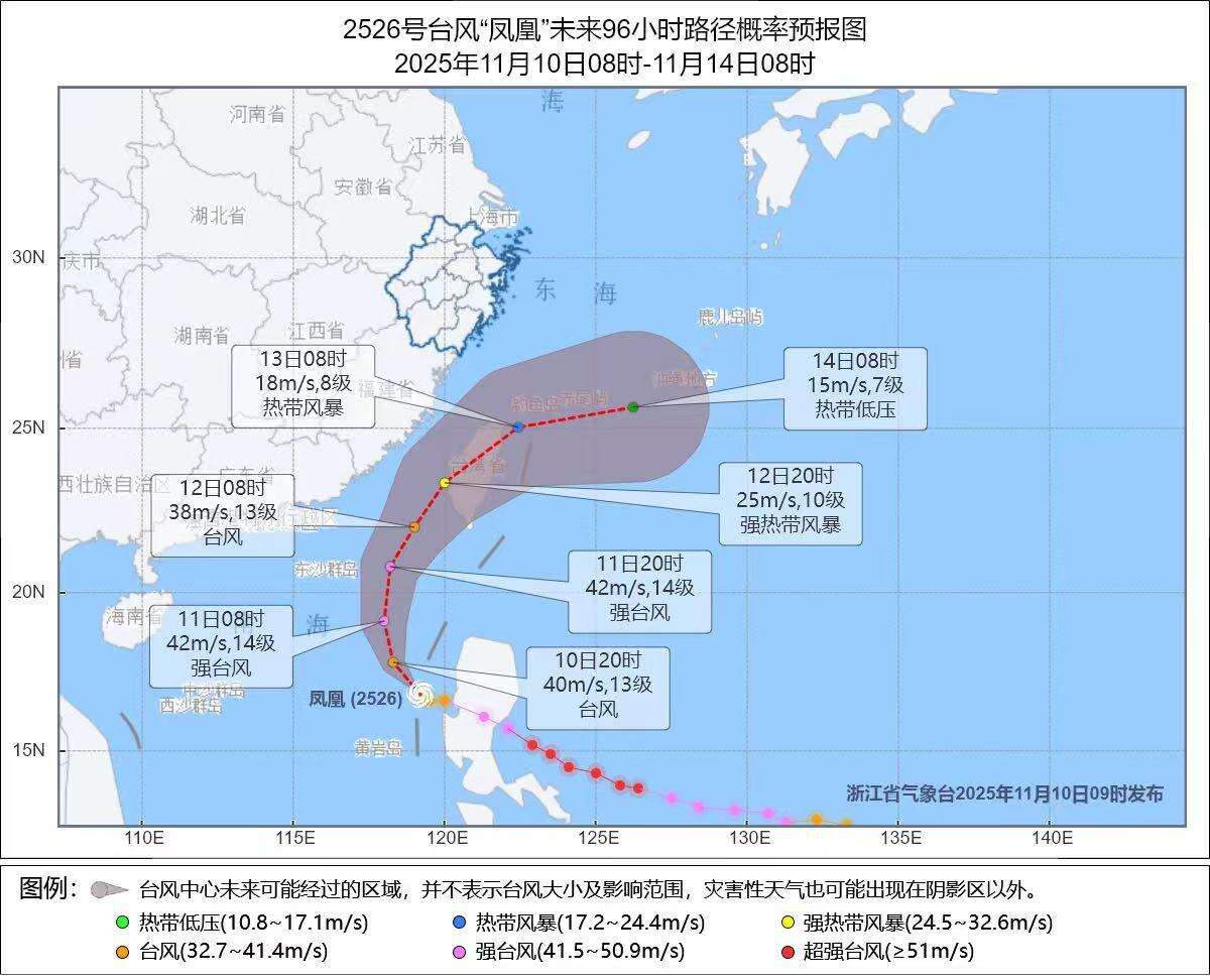 同时,气象部门提醒,11月10日-13日东海南部海域和浙南沿海海面持续有大风,相关水域水上作业和过往船舶应回港避风,加固港口设施;11日夜里至13日白天东部地区部分有较强降雨,需注意防范不利影响。秋冬季台风活动虽不常见,但一旦与冷空气结合,往往带来显著风雨影响,公众应提高警惕,及时关注气象部门发布的最新信息。