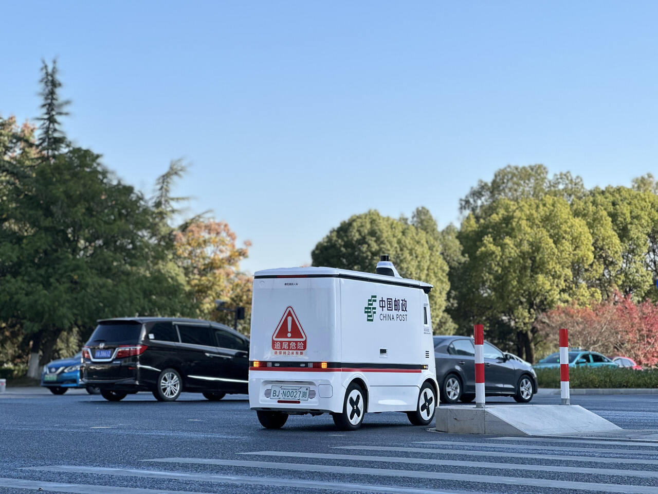 无人投递车上路 杭州邮政提供