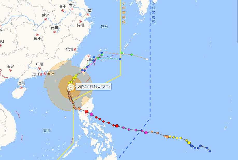 11月9日,台风“凤凰”已登陆菲律宾吕宋岛奥罗拉省沿海,此后继续向西北方向移动,10日已经移入南海中东部海面,将于12日下午至夜间在台湾岛西南部沿海再次登陆。