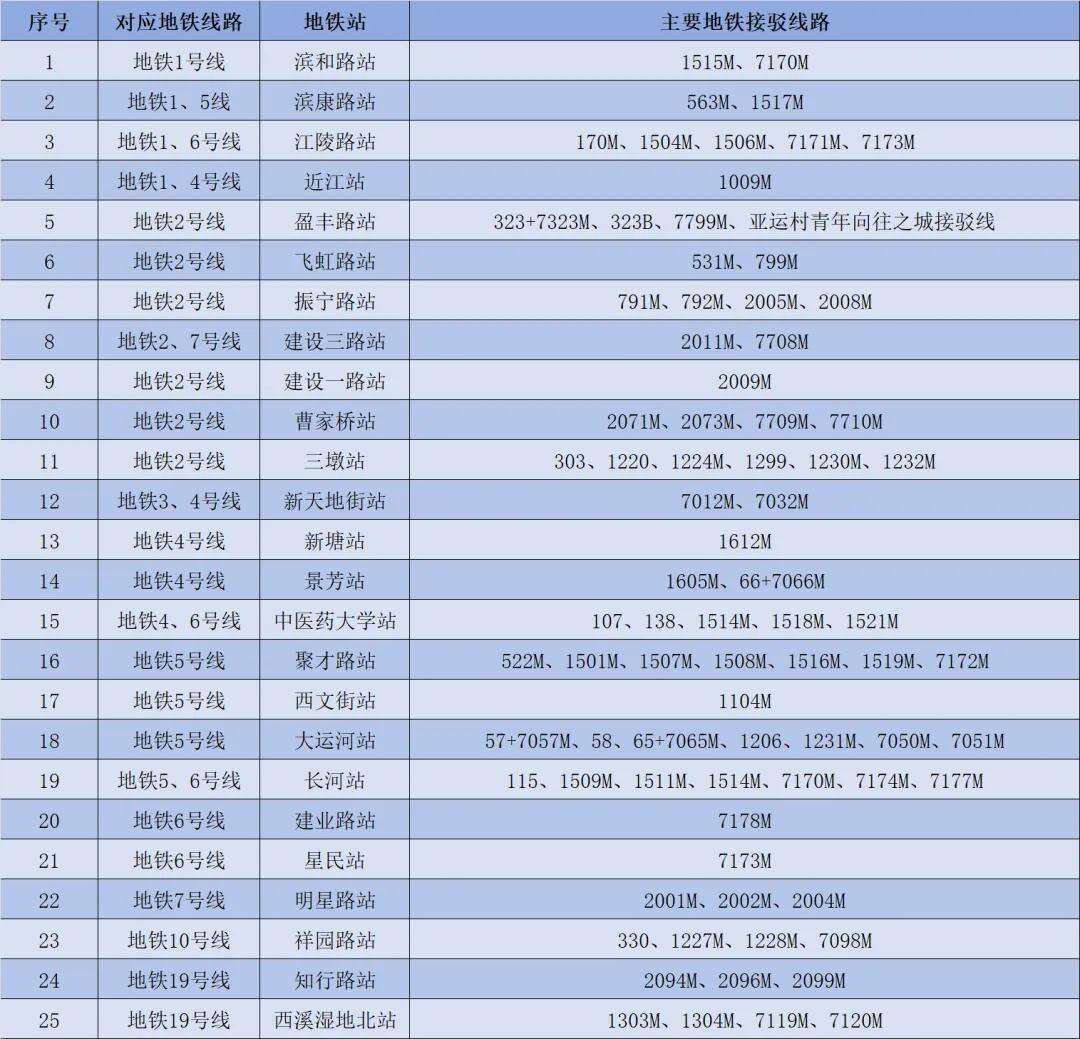 25处主要接驳地铁站分布图 图源:杭州公交