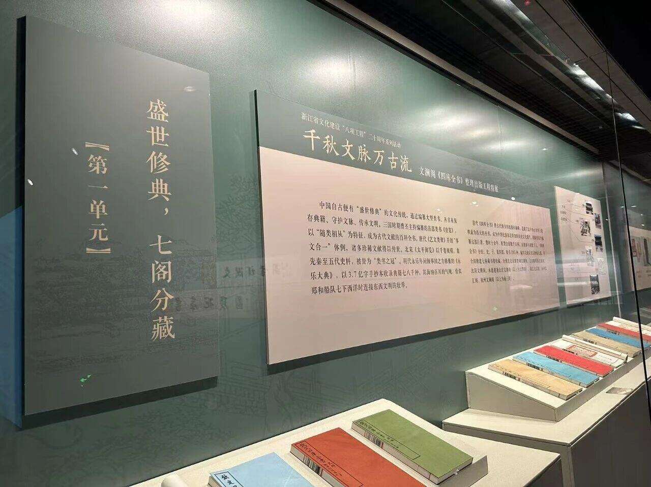 步入展厅,仿制的文渊阁、文溯阁、文津阁、文澜阁《四库全书》静静陈列,将观众带回乾隆年间的文化盛景。