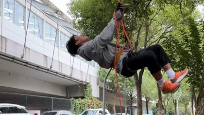 学生可根据自身情况,选择绳结攀登法、绞索攀登法、身体推进法或挺身式等不同方式,“双手抓绳、双脚蹬树干,身体稍向后仰,靠腿部发力往上蹬,同时双手慢慢拉绳,交替着一步一步往上挪。”张督成耐心解释。