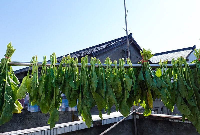 传统冬腌菜制作颇有讲究,需经晾晒、入缸、分层撒盐、踩踏压实,最后压上重物发酵。“小雪腌菜、大雪出缸”的俗语,正是这份冬日仪式感的写照。其中,“脚踩腌菜”的古法工艺更是延续至今,不少老杭州认为这样能更好地挤出菜汁、压实菜叶,让风味更浓郁。