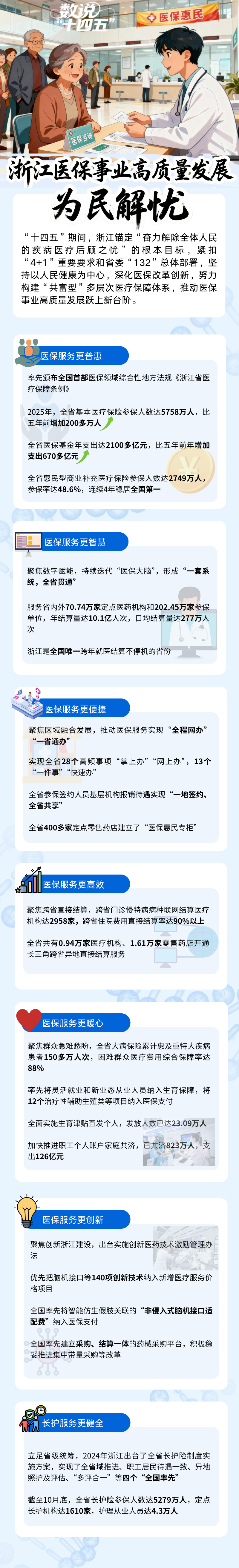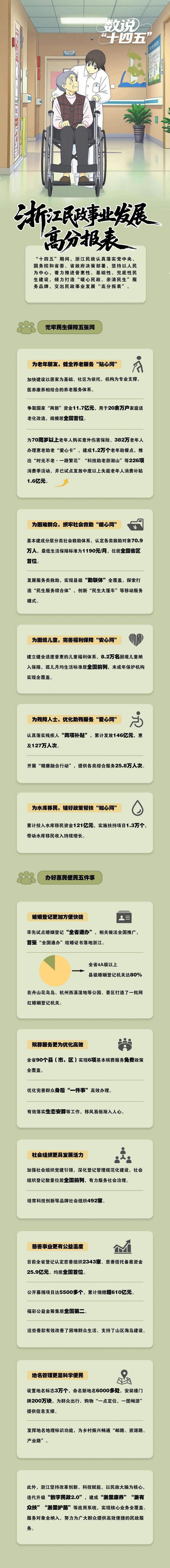 “十四五”期间,浙江社会民生事业成果丰硕,成绩可圈可点。一起从民政、人社、卫健、医保四个维度看浙江这五年来取得的累累硕果。