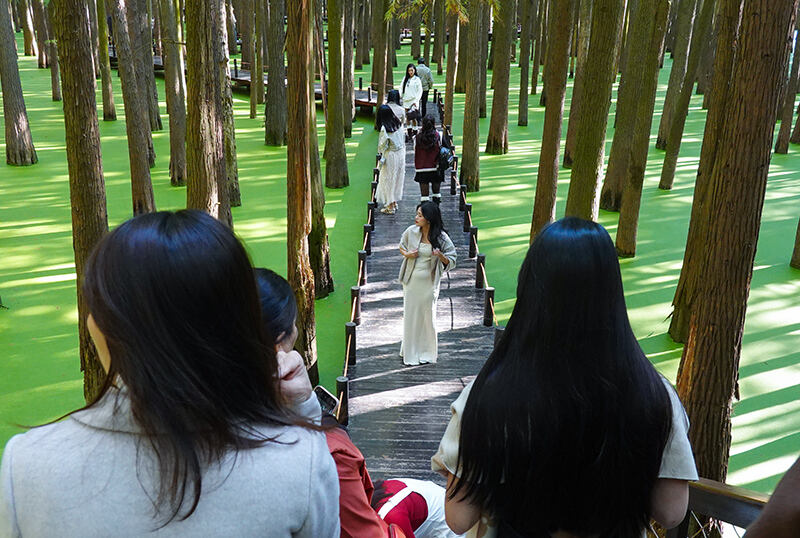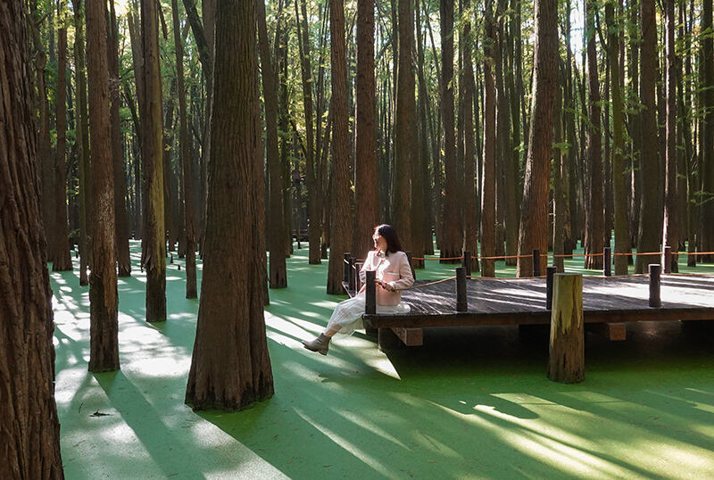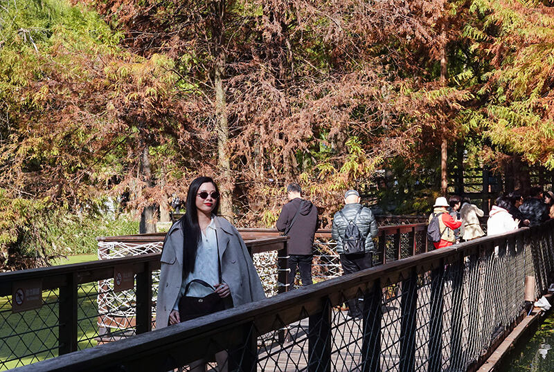 本地市民王女士则是特意趁工作日错峰前来,“每年秋天都盼着水杉变红,现在正是过渡阶段,绿中带红的层次最有韵味,等周末要再带爸妈来,赴这场秋日限定约会。”