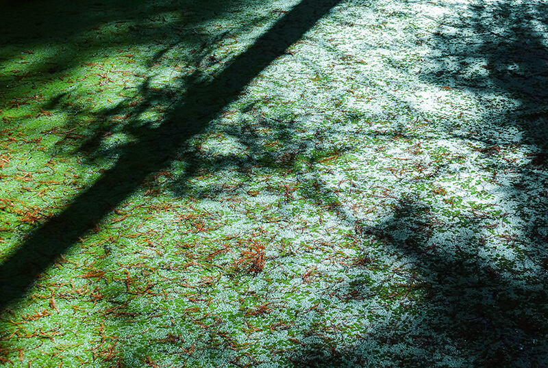 绿色的浮萍和红色的水杉叶 记者 陈天怀 摄