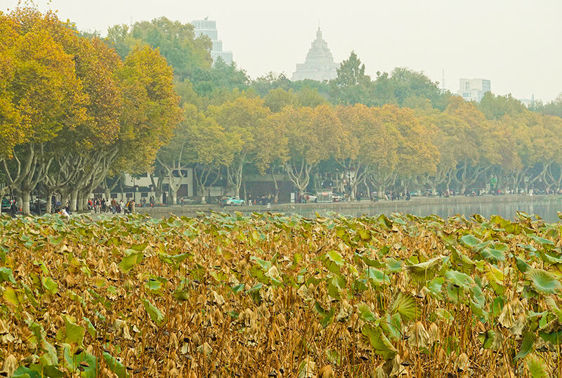 北山街梧桐和西湖残荷 记者 陈天怀 摄