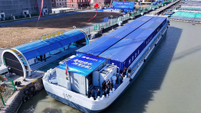 接下来,该船将率先投入“湖州长兴—嘉兴乍浦”内河生态绿色示范航线运营。这条航线全程170公里,沿线布设有4个充电站。“一般还剩20%电的情况下,船老大会去沿线充电,预计充满只需2.5小时。”国瑞科技公司技术研发中心技术三部经理曹健说。据测算,该船在此航线上全年可减少二氧化碳排放200余吨,相当于种植约2万棵树。在运营成本方面,以长兴港到乍浦港航线为例,同为64标箱的纯电船和柴油船相比,纯电船单航次能耗费用仅为柴油船的1/3,单船每年光能耗就可节约约35万元。