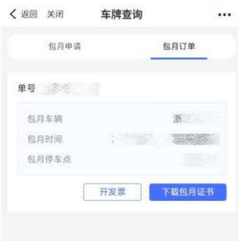5.下载。包月成功后,车主可根据自身需求,选择开发票、下载包月证书(非必须环节)。