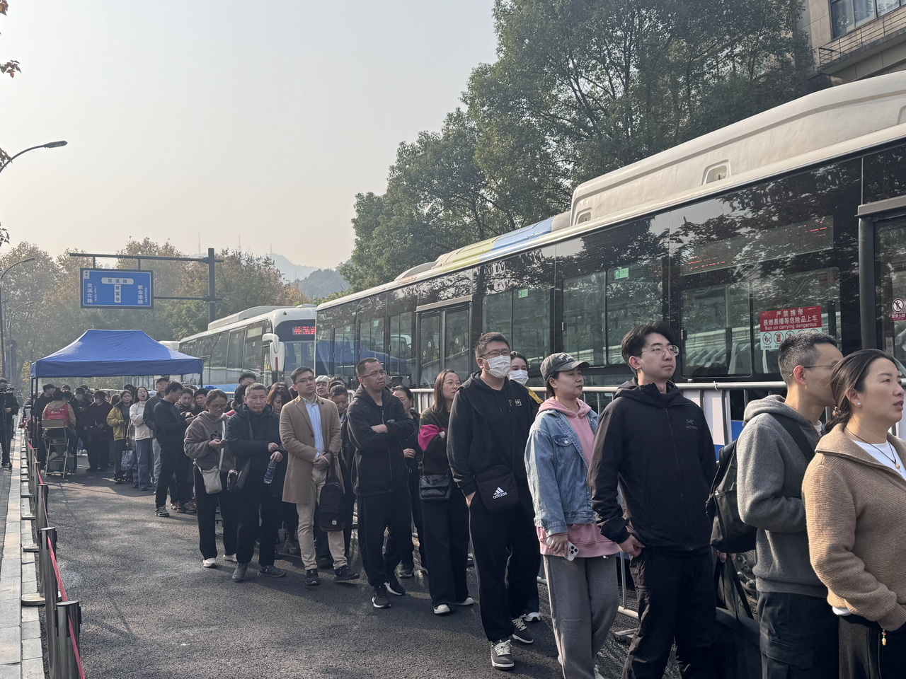 记者了解到,杭州公交对灵隐区域周边的14条线路,根据整体运营情况,加密了部分班次和运营的服务时间。同时针对可能出现的客流集聚情况,在周边10个公交站点设计了应急储备力量,来应对突发情况,服务客流的应急疏散。