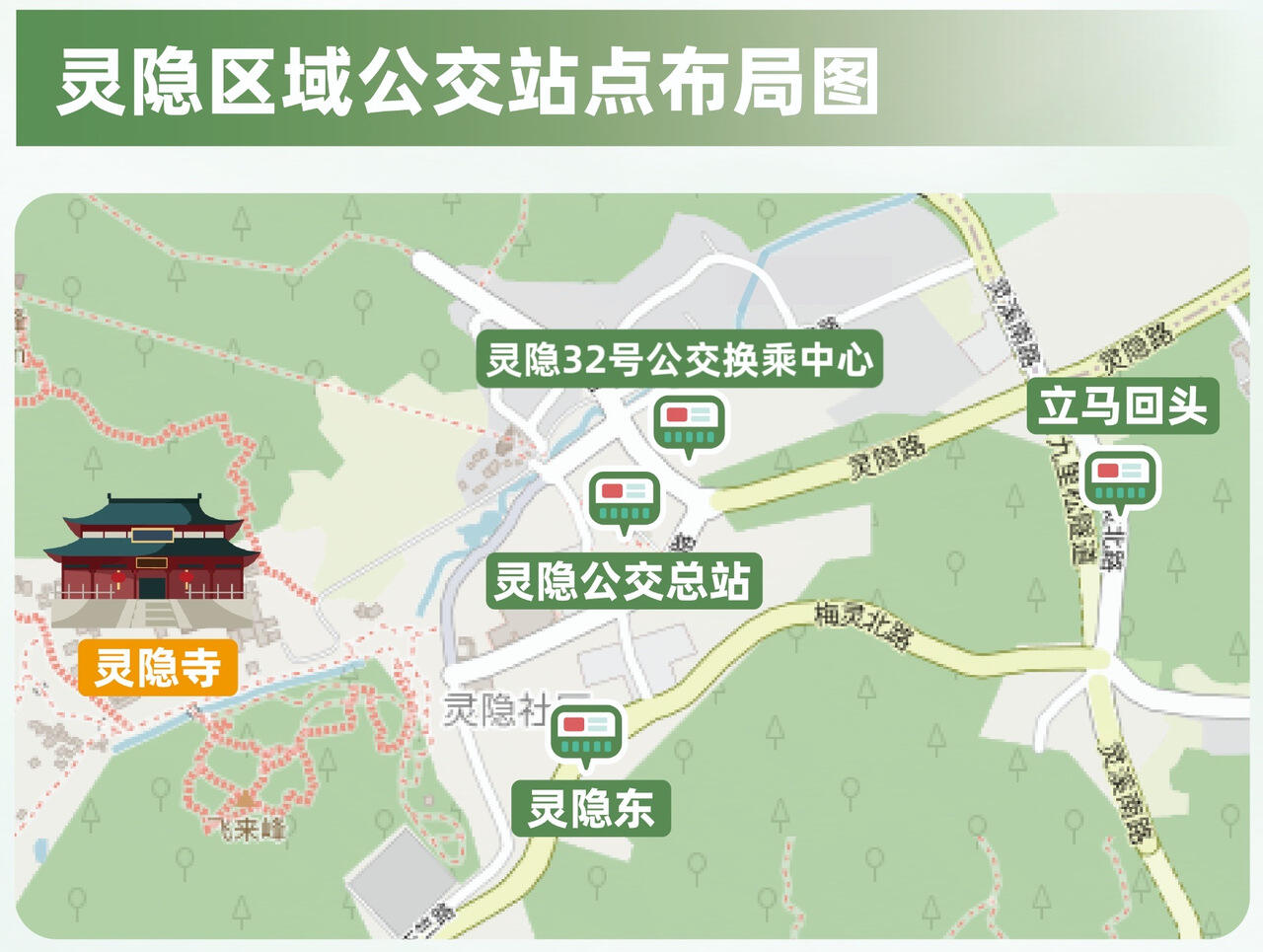 为分散客流,杭州公交还在灵隐景区附近,增设了灵隐32号公交换乘中心,将停靠278、319、324H路及城西公园至灵隐专线等4条公交线路,以地铁接驳线的线路停靠为主,覆盖了地铁3号线、6号线、10号线、19号线。这也将推动区域内灵隐公交总站与灵隐路32号总站形成“客流分流,运力互补”的两大公交枢纽格局,进一步提升公共交通运营效率。