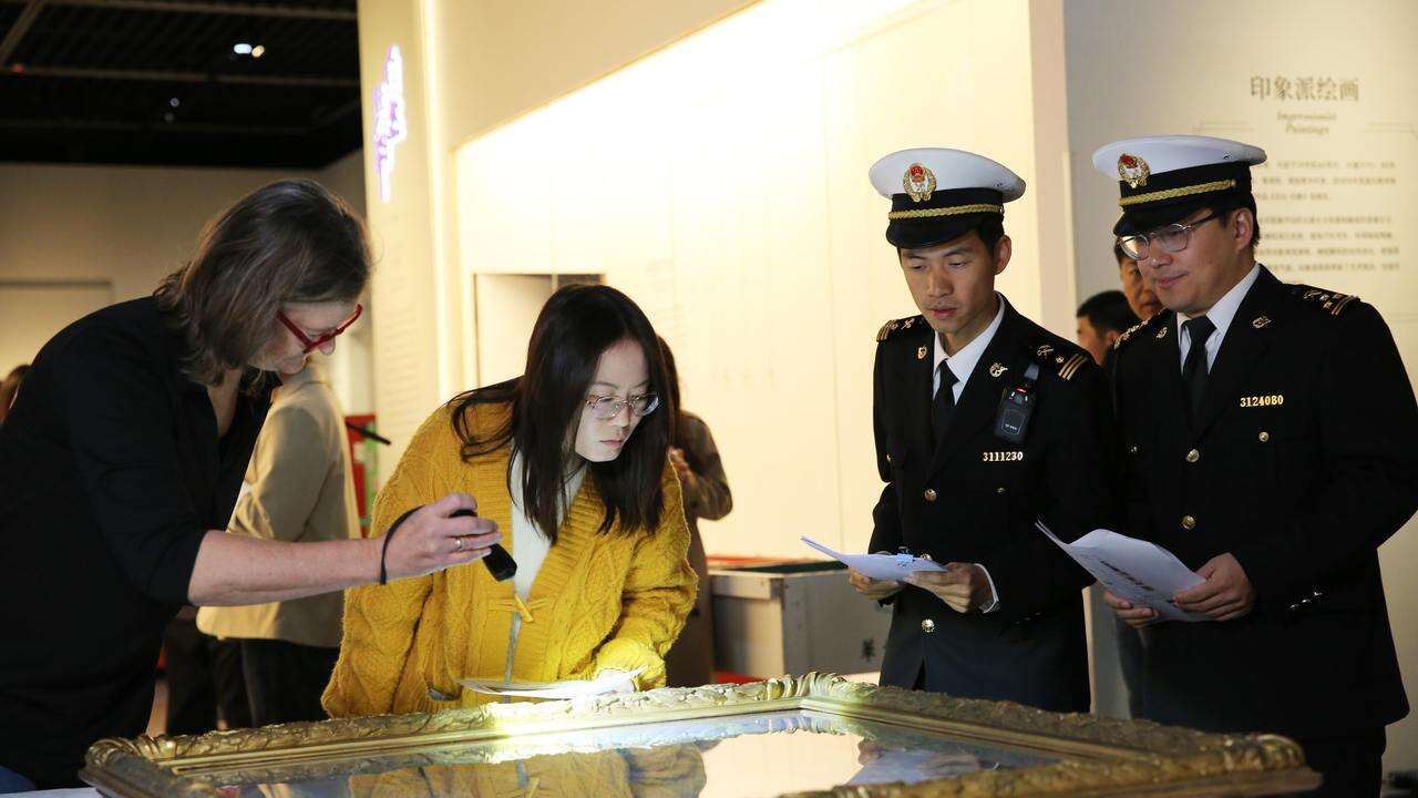 宁波海关对来自美国芝加哥艺术博物馆的入境参展文物进行现场监管 姚菊萍 摄