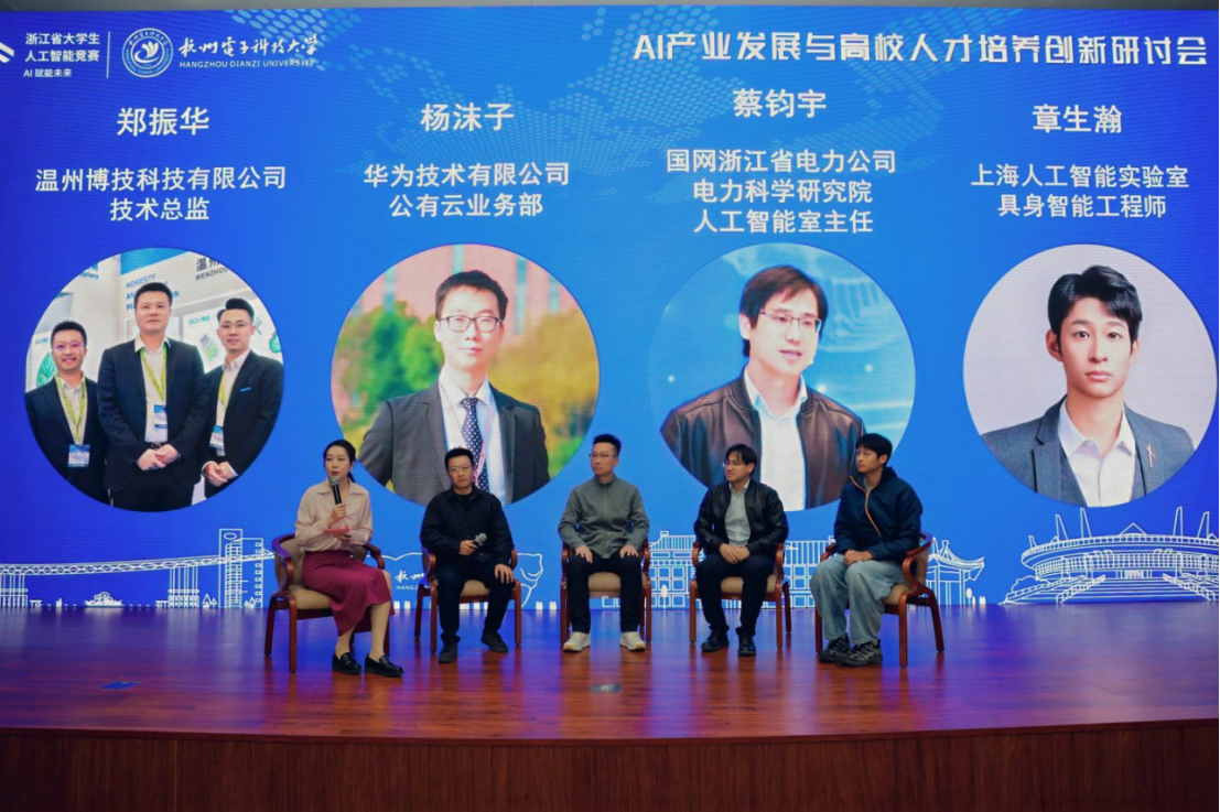 总决赛期间,AI高端研讨会同步在杭州电子科技大学举办。中国工程院院士谭建荣以及云知声等独角兽企业创始人围绕热点议题深度对话。大会邀请人工智能相关领域国家级人才20余人,同步进行5个平行分会场,为浙江AI产业发展提供前瞻性指引。