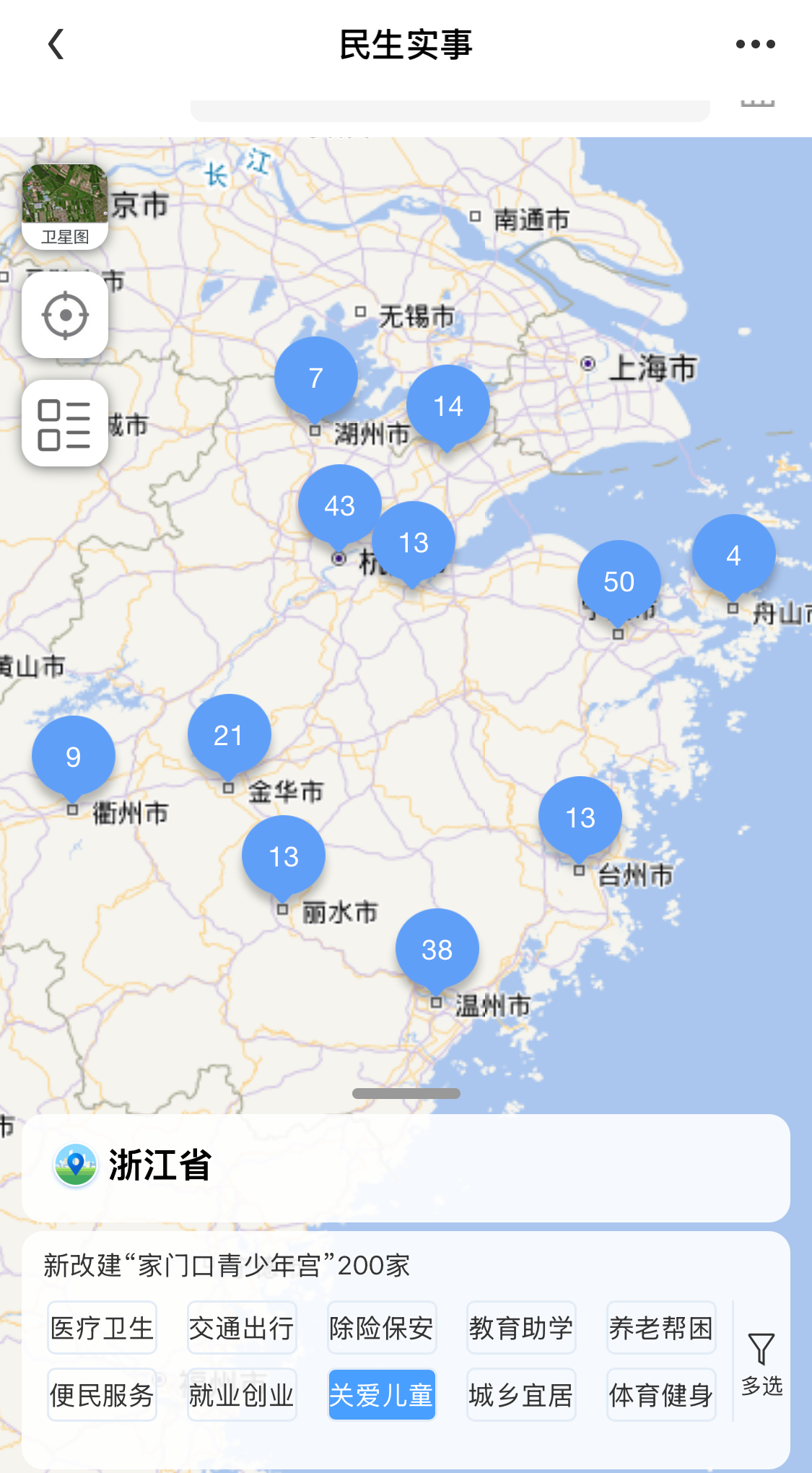 2025年浙江省政府工作报告提出谋划实施好十方面民生实事。其中,关爱儿童方面,新改建“家门口青少年宫”200家。就业创业方面,推进“30分钟职业技能培训圈”建设,实现技能培训基地、站点全省县城和中心镇全覆盖,开展重点领域就业技能和企业职工岗位技能培训50万人次以上,为80万重点群体提供就业帮扶,其中离校未就业高校毕业生6万人、退役军人1万人,帮扶残疾人就业1万人以上,建设青年入乡实践站点1000个。教育助学方面,提档升级中小学校食堂800家,新增公办普通高中新生学位2万个,为持有居住证的农民工随迁子女100%提供义务教育公办学位。便民服务方面,改造提升户外劳动者服务站点1500家以上,其中24小时不打烊站点80个。