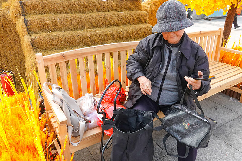 80岁的陈阿姨在清点自己的“战利品” 记者 陈天怀 摄