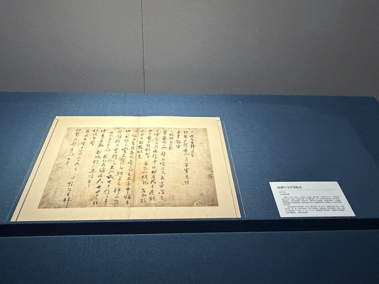 他们的众多精妙之作亦在展览中呈现,如“陆游行书苦寒帖页”书于乾道四年(1168)十一月二十六日,其时陆游正罢官居家。全篇用笔方圆兼备,体势纵逸修长,笔画恣意酒脱;“范仲淹行楷书二札卷”含《边事帖》和《远行帖》两涵书礼,书法拉硬方正,神劲中蕴藏法度,恰如范仲淹之为人;“董其昌行书岳阳楼记卷”写于董其昌55岁之时,字大如拳,流畅劲健,通篇数百字一气呵成……