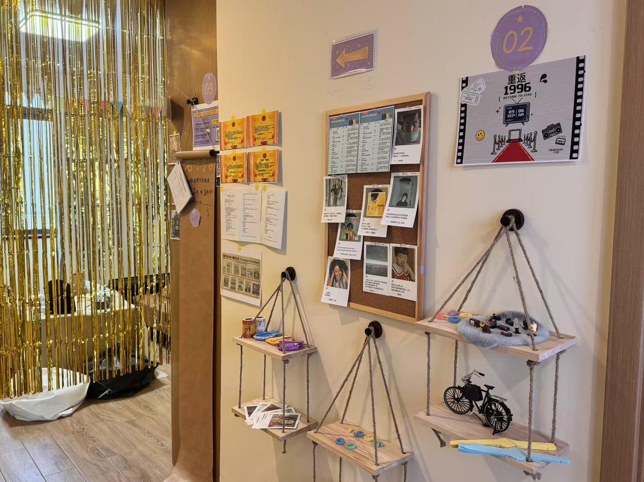 在这不算太大的空间里,记者的视线总会被细节抓住:被贴满的照片墙记录着每次聚会的笑脸,手写的活动海报、手工的编织装饰、角落里的展览墙……生活的痕迹和创作的痕迹在这里重叠。