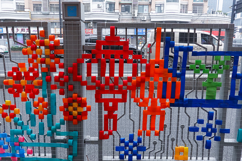 “今天天气一般只想匆匆回家,看到这些穿毛衣的树,女儿的脚步都慢下来了。”家住附近的市民陈女士牵着5岁的女儿停下拍照。刚从地铁站出来的游客刘女士和她的朋友也被小树上的毛绒玩具吸引,拍了不少照片:“比单纯挂灯笼有意思多了,既有艺术感又接地气。”