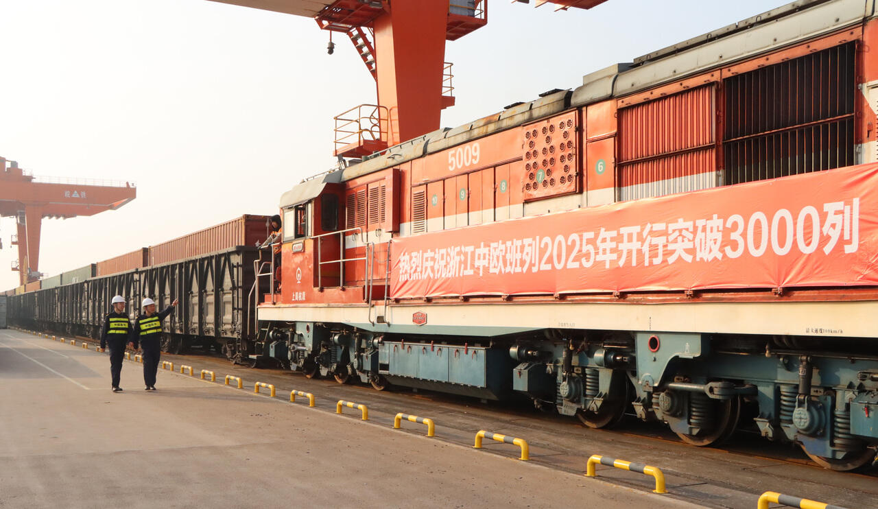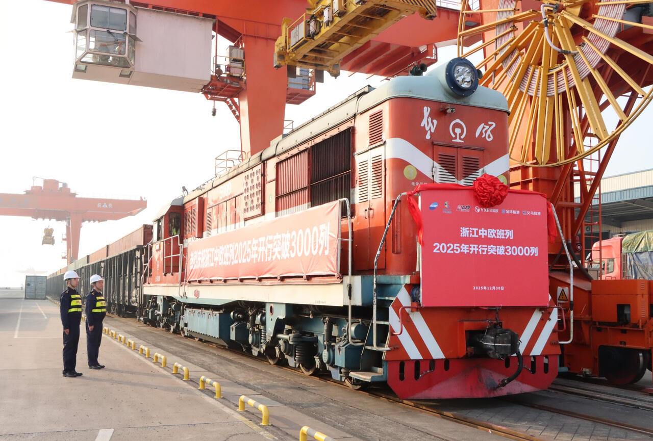 浙江在线12月30日讯(通讯员 张嘉政 周华伟 记者 陈雷)12月30日,经杭州海关所属金华海关监管,一列满载光伏组件、汽车配件的中欧班列从金华南站鸣笛启程,经新疆霍尔果斯口岸出境奔赴中亚五国。这趟班列的开行,标志着浙江中欧班列(义新欧)2025年开行量突破3000列大关,创历史新高。