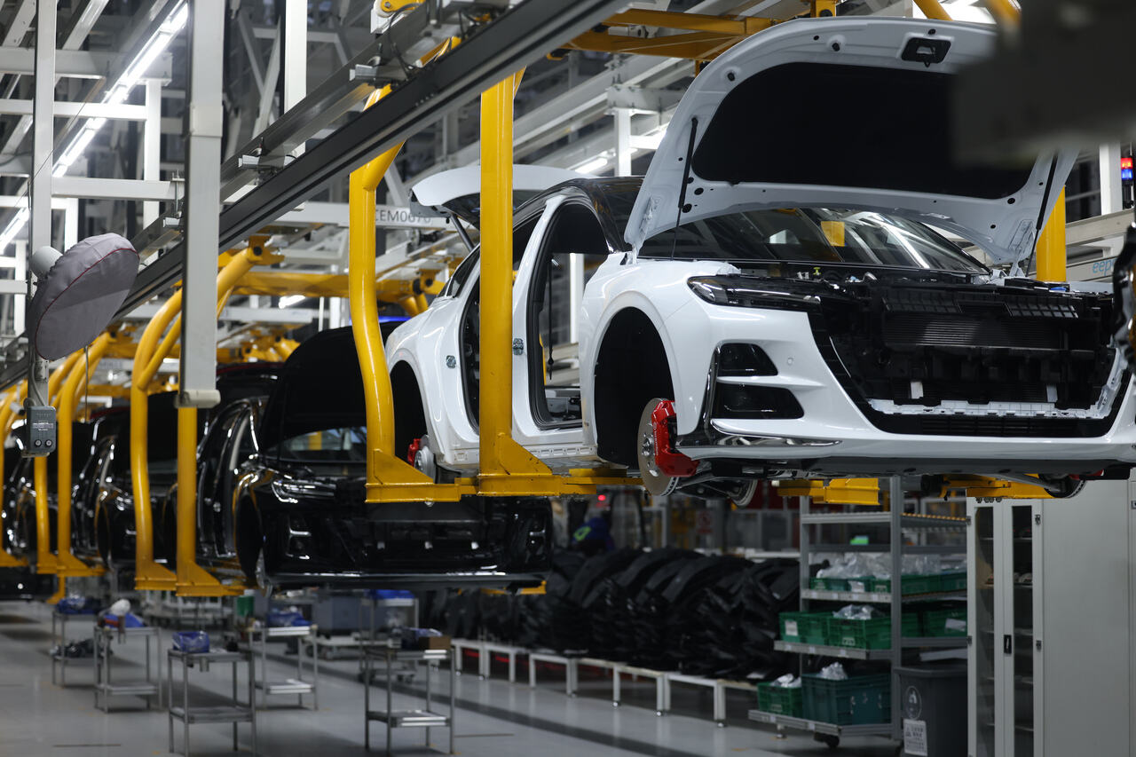 中国一汽素有“新中国汽车工业摇篮”的美誉,中国一汽工程技术部(工艺工程院)总经理、党委书记余文超介绍,红旗繁荣厂区自2021年建成投产以来,一直处于满产状态,平均每天有约1000台汽车从这里走下流水线。在自动化机械与专业人工的配合下,每54秒,就有一辆新能源汽车顺利下线。汽配零件与整车装配,正通过产业上下游紧密衔接。