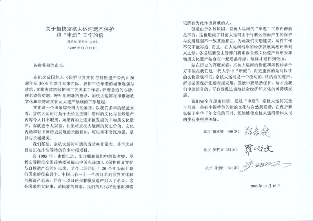 走进展厅,一封信件映入眼帘,2005年12月,郑孝燮、罗哲文、朱炳仁三位学者联名致信大运河沿线18个城市的市长,呼吁启动大运河申遗工作。20年后,在展览现场,这封信成为整场展览的起点。它提醒观众,如今运河滋养的艺术表达,与二十年前那份朴素的守护决心息息相关。