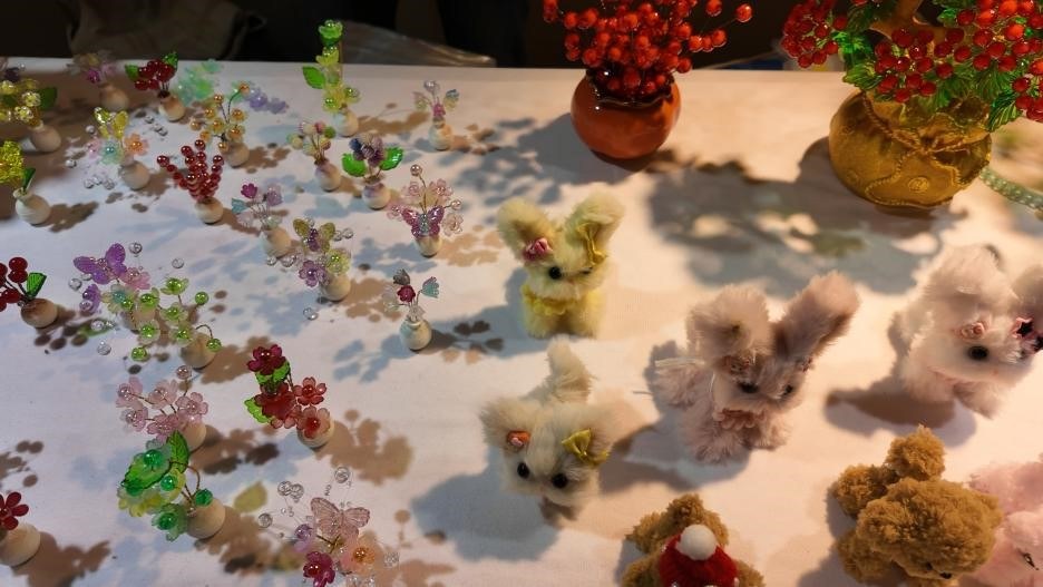 “8块、16块、28块!就可以拥有活灵活现的珠串手工艺品!”朱迪兔、发财树……和非遗“抢戏”的,还有DIY手作。“我们家孩子每年都要买DIY的手工发夹,每年都要换新款!”一位妈妈在为自己的孩子试了一款又一款的发饰。“只要做得精致,就会有市场!”陈老板分享自己的心得,“我平时就爱捣鼓这些小玩意,再加上自己手艺不错,生意红红火火。”