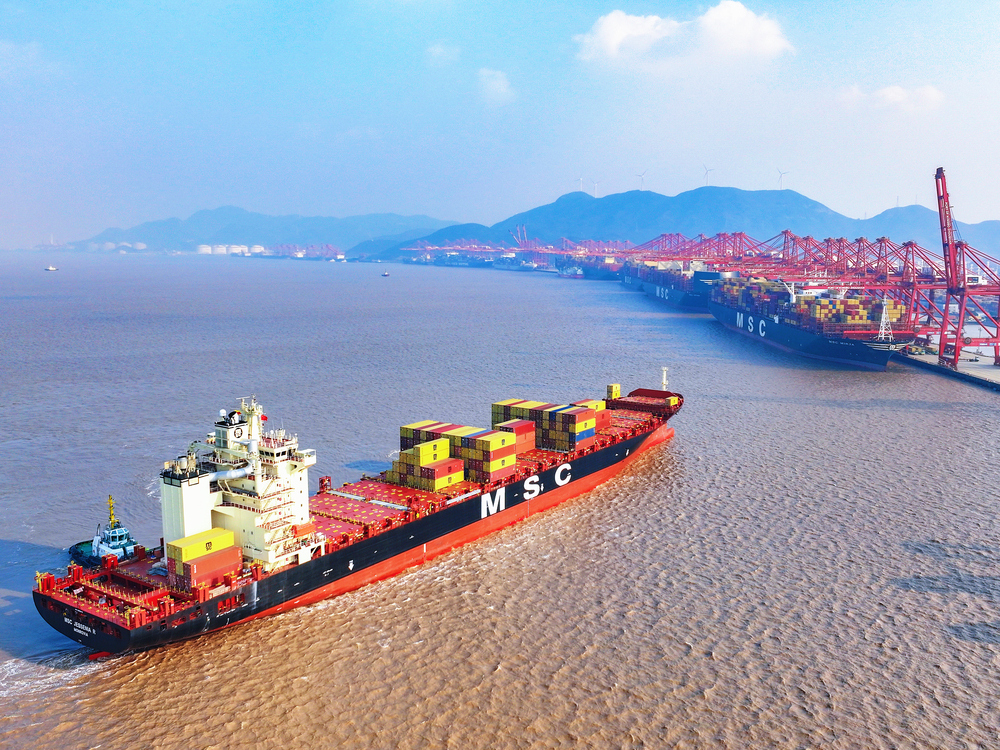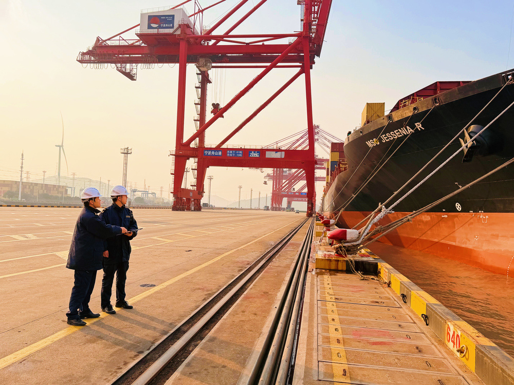 为保障2026年首条航线顺利开辟,宁波海关依托智慧海关建设,主动对接航运企业、码头,确定挂靠港口、运营模式等信息,在货物通关、船舶申报等方面为企业提供便利。在“地中海杰西尼亚”轮靠泊后,宁波海关关员第一时间登轮完成卫生监督、人员检疫等工作,显著缩短船舶作业前等待时间,节省通关成本。“我们在为企业提供通关、物流等方面政策咨询的同时,也不断优化船舶监管模式,实现船舶申报、舱单传输、空箱申报等业务全流程无纸化办理,保障船舶从靠泊、在港到离泊全过程物流畅通。”宁波海关所属大榭海关副关长周晓平说。